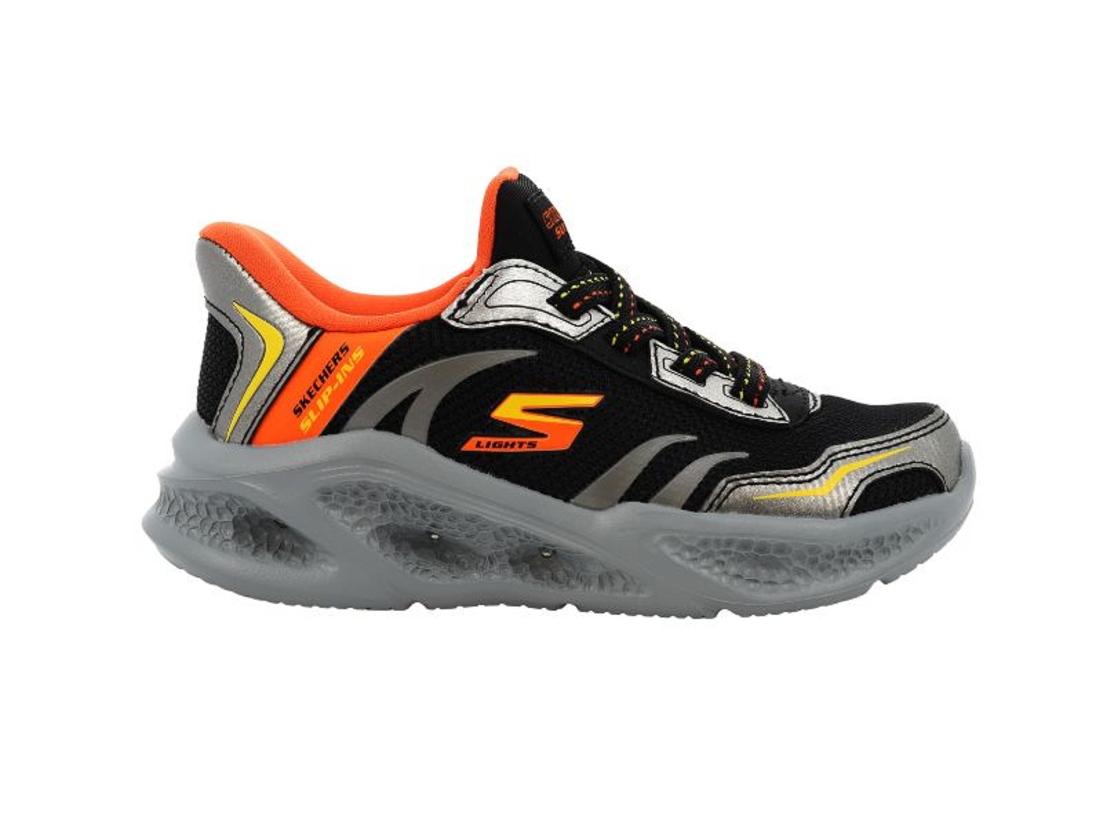 Découvrez le modèle meteor lights brisk 27 35 noir orange pour garcon de la marque Skechers.